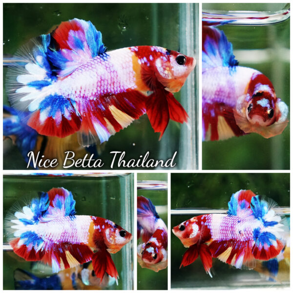 High quality Betta Fish Multicolor Rainbow Siam Lollipop OHMPK for sale aquatic life readily available for your freshwater exotic betta fish aquarium. Any top quality bettas by Nice Betta Thailand international farm. We shipping worldwide safe for fish and take care fish import service via partner trans shipper and also available shipping direct to Airport in your country.